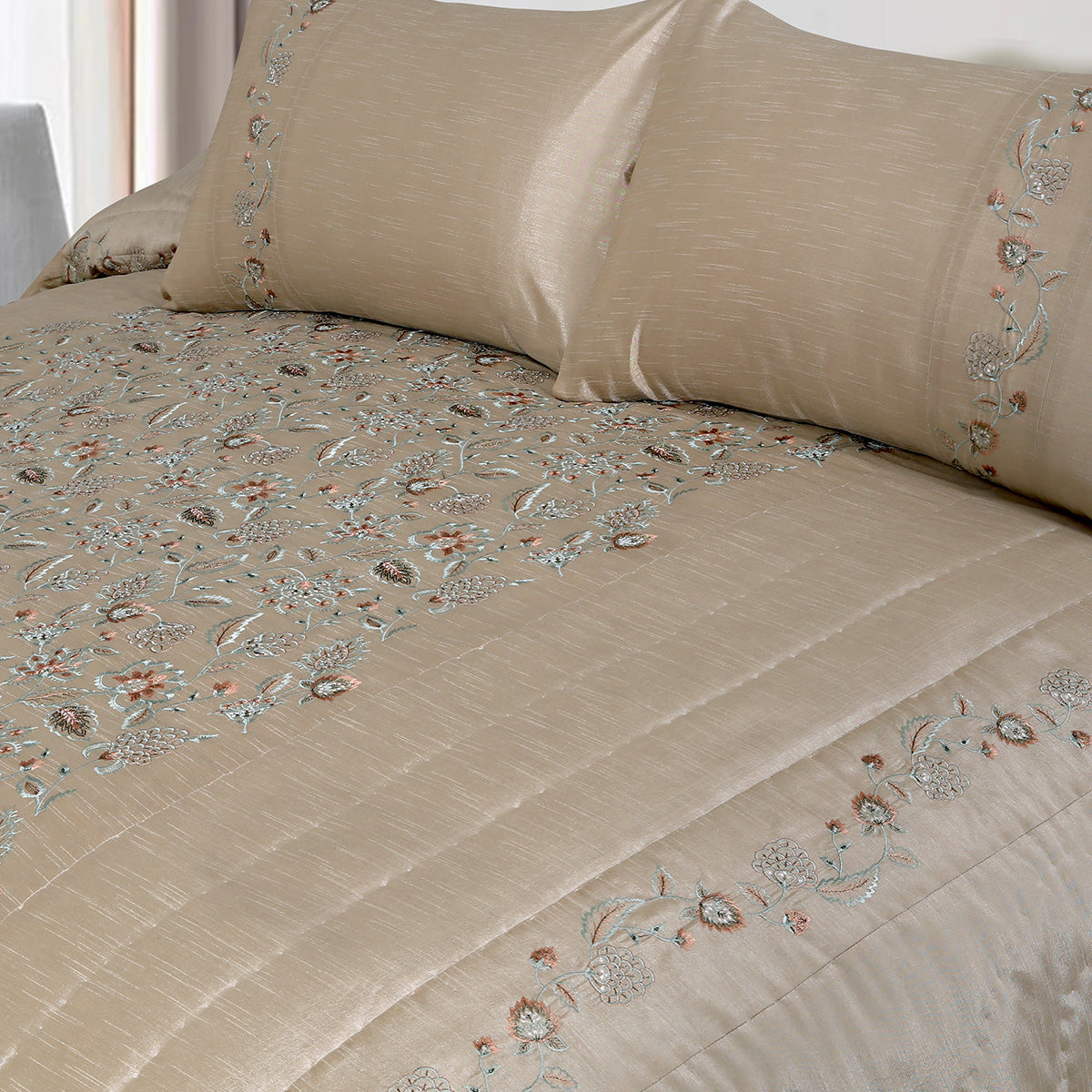 Intricate design details embroidered onto finest luxury fabrics for cloud like softness.